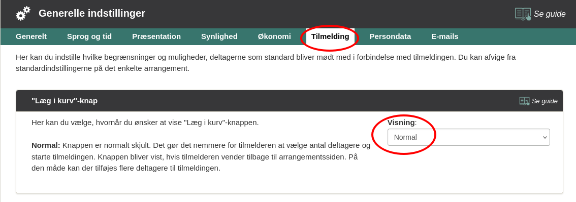 Bemærk at du kan ændre indstillingen for et enkelt arrangement, hvis du ønsker, at det enkelte arrangement skal afvige fra standard-indstillingen.
