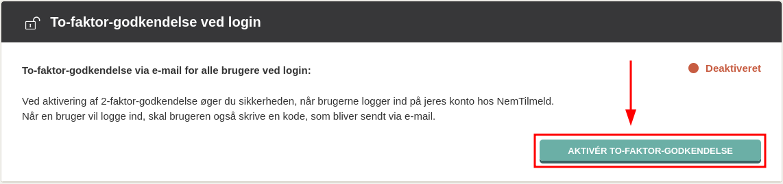 Sådan slår du to-faktor-godkendelse til på jeres konto hos NemTilmeld