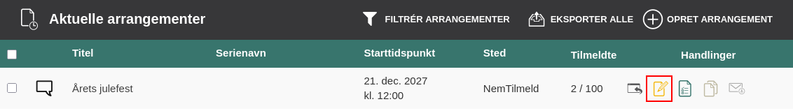 Bemærk, at ændringer her kun vil gælde for et enkelt arrangement. Hvis du gerne vil ændre fremadrettet for alle arrangementer, kan du se hvordan i denne guide.