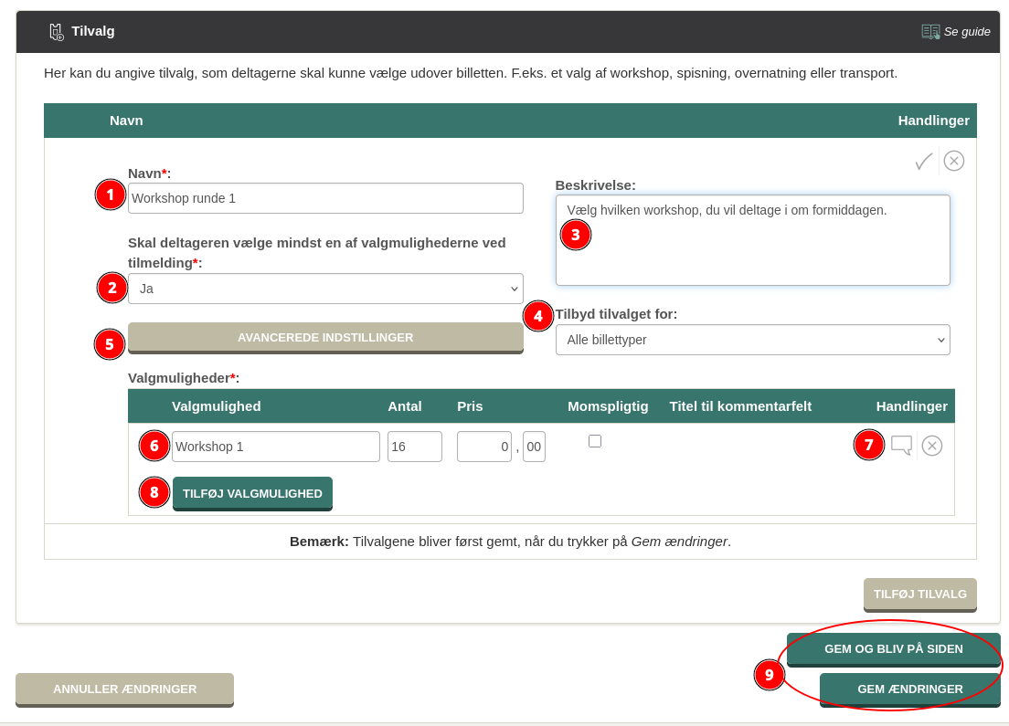 Herunder finder du en trin-for-trin guide til at oprette et tilvalg.