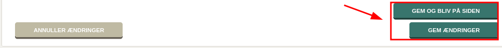 Klik "Gem og bliv på siden" for at fortsætte med at redigere arrangementet eller "Gem ændringer" for at vende tilbage til oversigten. Begge knapper er nederst til højre på siden.