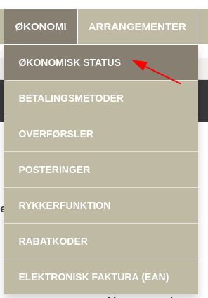 Du foretager deaktiveringen fra siden Økonomisk status som du finder i menuen under Økonomi: